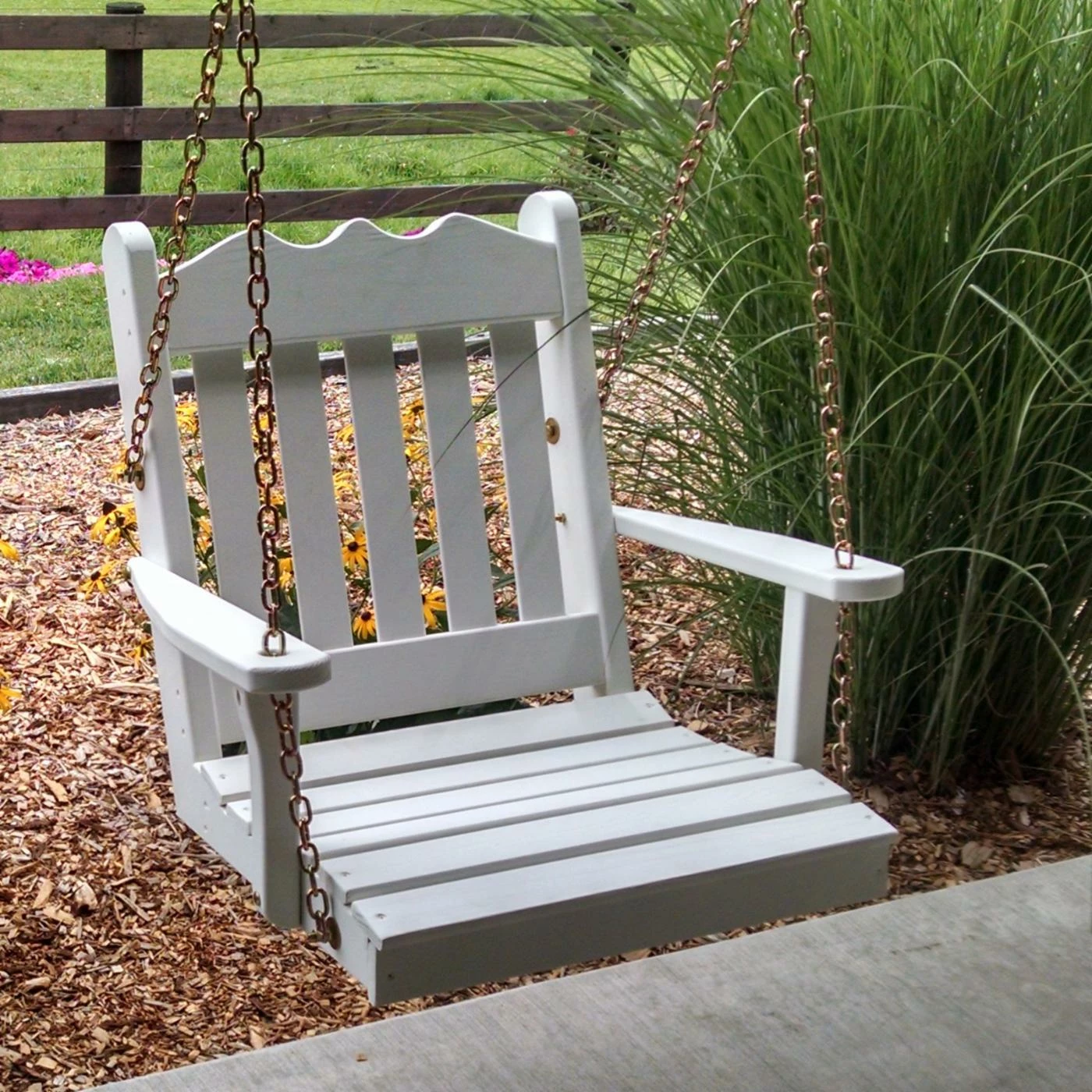 Just imagine making the A & L Furniture Yellow Pine 2-ft. Royal English Chair Swing with Chains your personal throne. Whether it’s a solo cup of tea or an engaging conversation, life happens around quality furniture. This classic solid pine chair has an understated crown and comes in your choice of color. This product is proudly Made in the USA by Amish craftsmen.