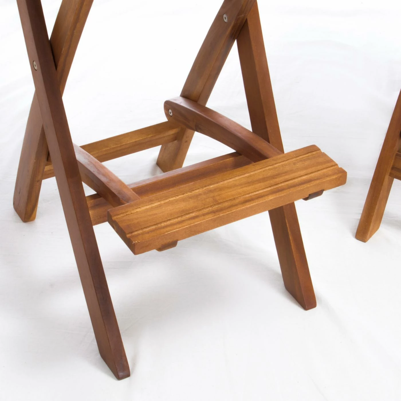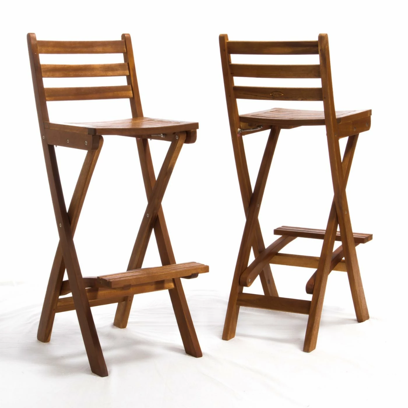 Direct the action from your perch atop the HN Outdoor Kincaid Foldable Outdoor Wood Barstool. Fine craftsmanship and the rich grain of fine hardwood impart a beauty that will endure through many seasons. The seat is 31 inches off the ground, providing a great view of your surroundings. With a built-in footrest for comfort, every detail is ergonomically designed. When the stool isn’t needed, it easily folds and stows. Arrives fully assembled.