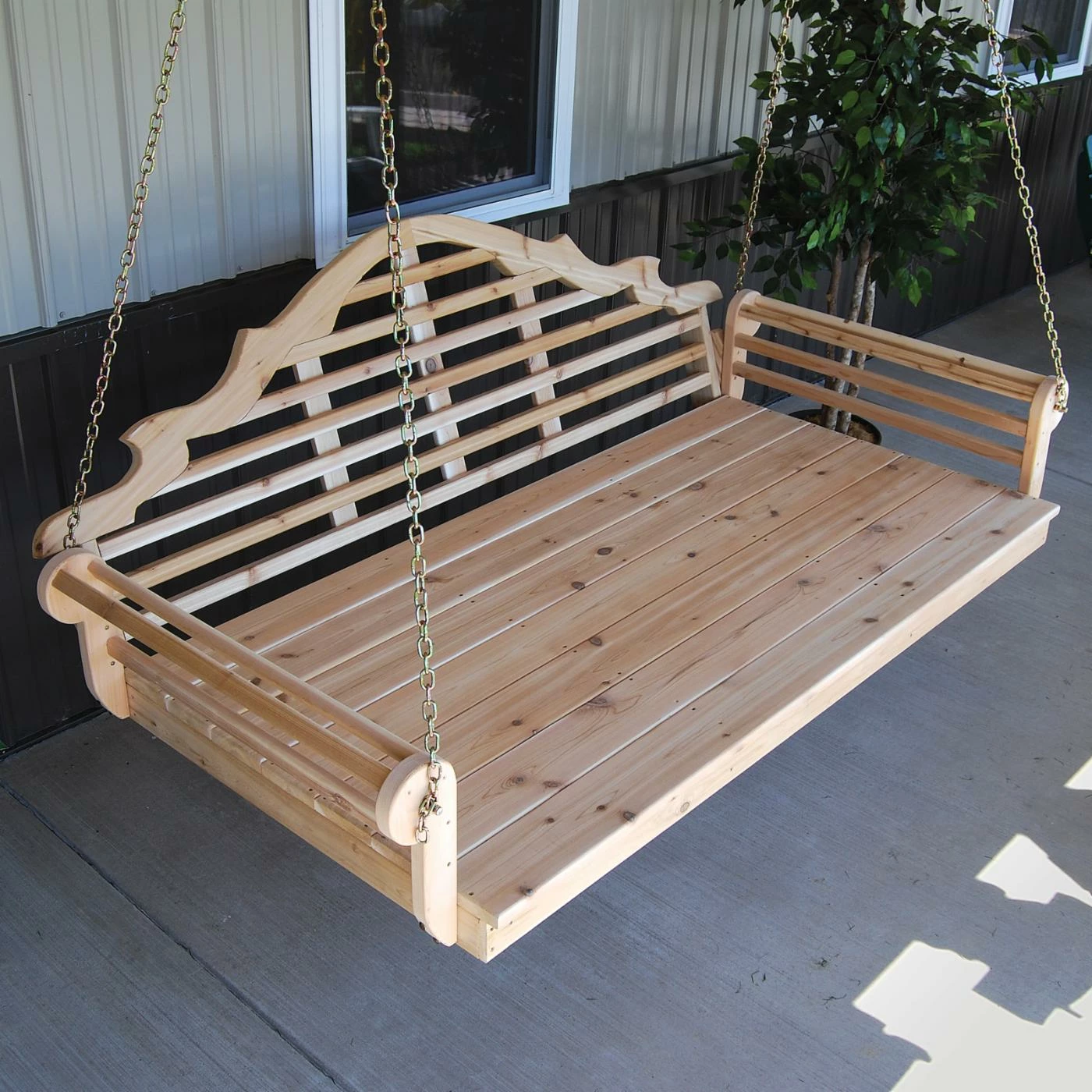 The HN Outdoor Gwynn Western Red Cedar 85 x 47 in. Extra Large Swing Bed – Holds Twin Size Mattress, will make you feel like royalty. it’s made for sleeping, napping, or just lounging on your porch. Fits a twin size mattress (not included). Amish-quality construction with western red cedar. Choose from the available wood finish options, including Natural-Kote soy-based wood stains. This product is proudly made in the USA by Amish craftsmen. Overall dimensions: 85L x 47W x 33H in. Interior dimensions: 75L x 38W in.